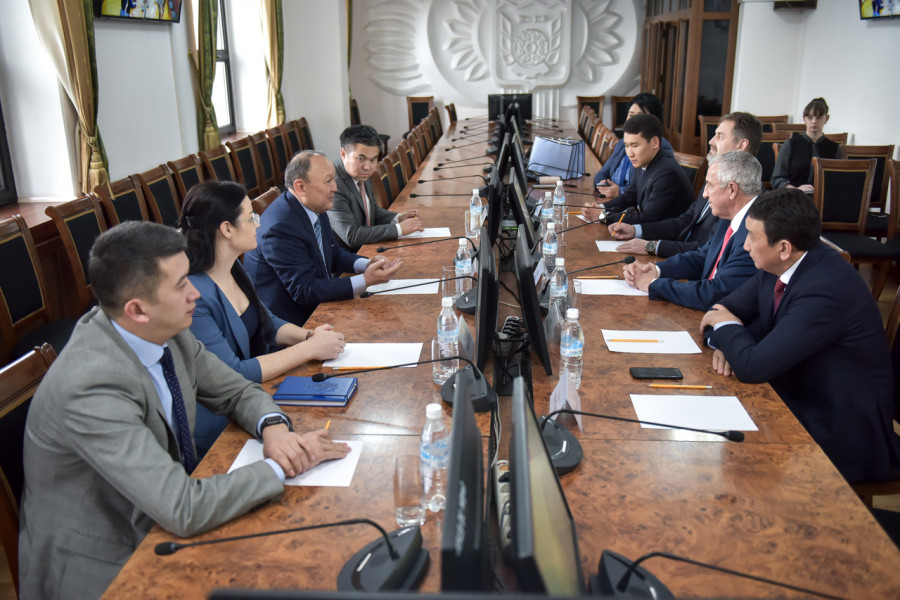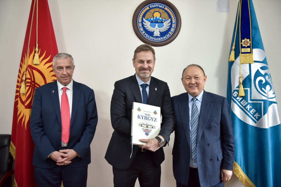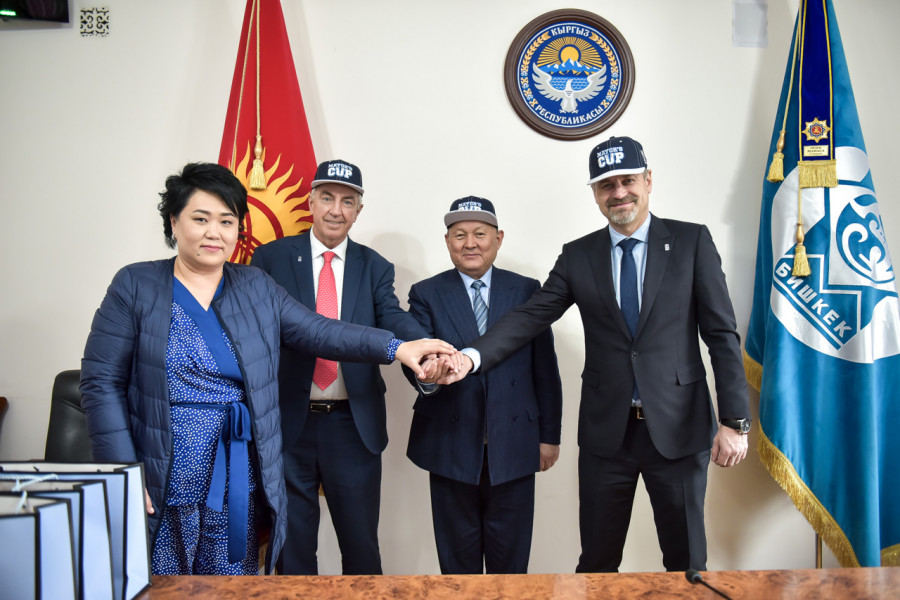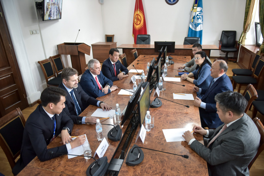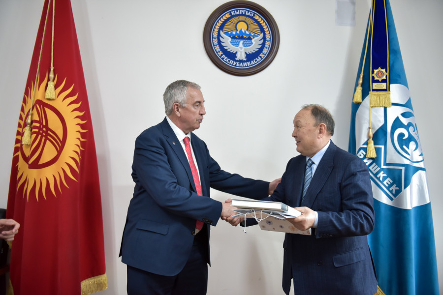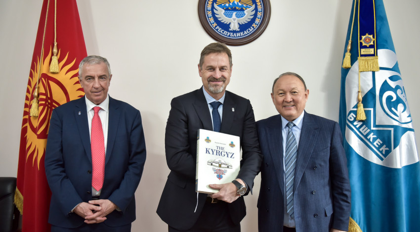 В здании муниципалитета состоялась встреча мэра Бишкека Эмилбека Абдыкадырова с делегацией международной федерации хоккея с шайбой во главе с президентом международной федерации хоккея с шайбой Люком Тардифом.