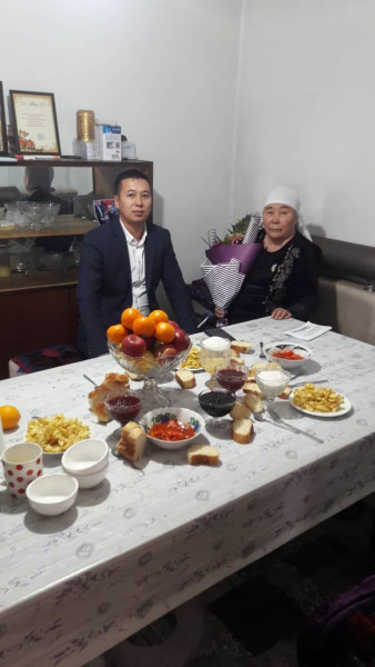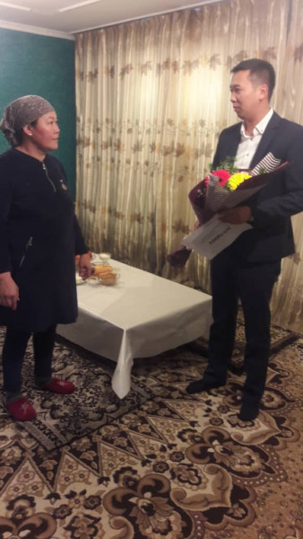 Глава Октябрьского района Мирлан Эшкожоев поздравил матерей-героинь Гуляим Абдылдаеву,Тахмину Кайыкову и героя социалистического труда Киргизской ССР Мукен Сыдыкову. И оказал материальную помощь.