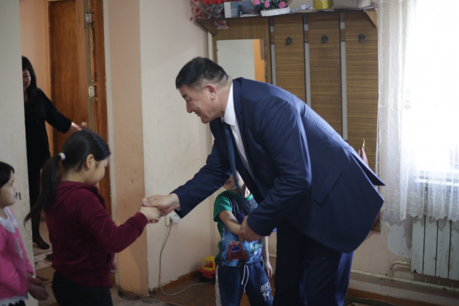 Аким Первомайского района Жамалбек Ырсалиев поздравил Гулзат Тойгонбаеву, которая имеет 9 детей и Кожомкулову Кайыркул, мать 4 детей. Вручил им продуктовые корзины и пожелал крепкого здоровья, душевной теплоты и радости.