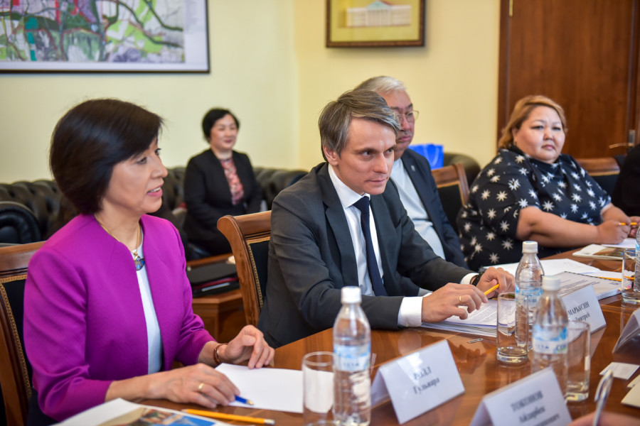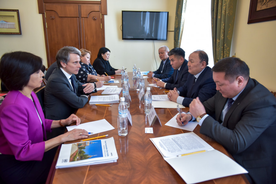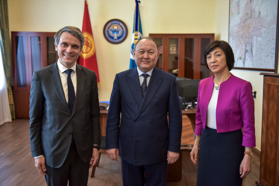 Мэр столицы Эмилбек Абдыкадыров встретился с заместителем исполнительного секретаря Европейской экономической комиссии (ЕЭК) ООН Дмитрием Марьясиным и региональным советником отдела ЕЭК ООН по лесам, землепользованию и жилищному хозяйству Гульнарой Ролл.