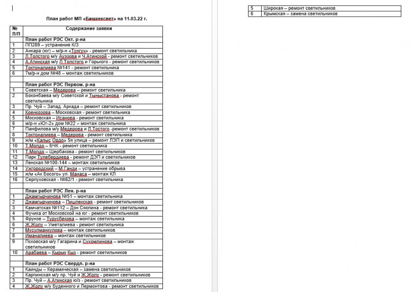 По сообщению муниципального предприятия «Бишкексвет», 11 марта на городских улицах столицы ведутся ремонтно-восстановительные работы сетей наружного освещения. По этой причине в дневное время включат освещение на некоторых улицах.