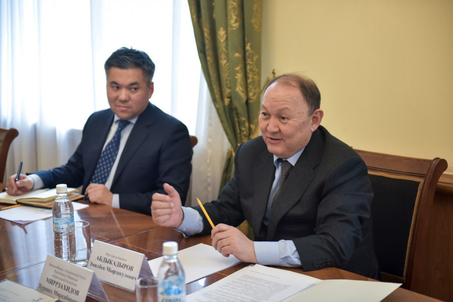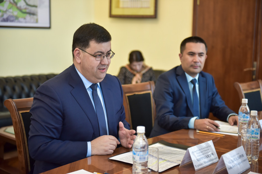 Мэр города Бишкек Эмилбек Абдыкадыров встретился с Чрезвычайным и Полномочным Послом Республики Узбекистан в Кыргызской Республике Хуршидом Мирзахидовым.