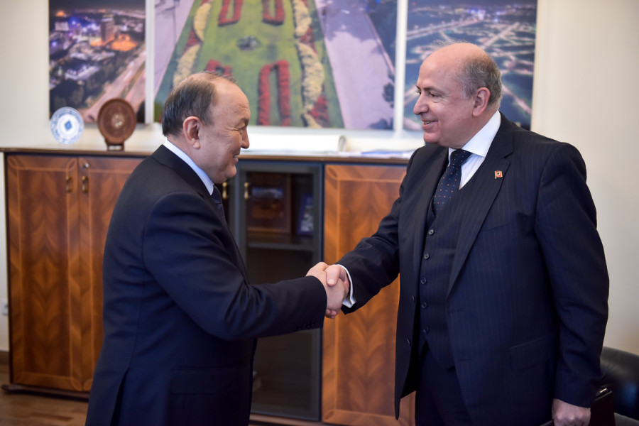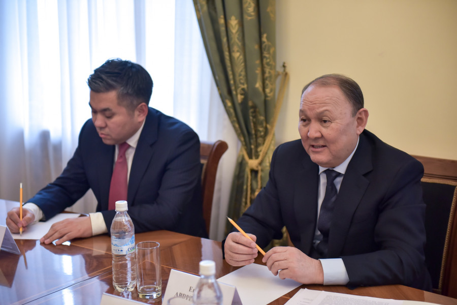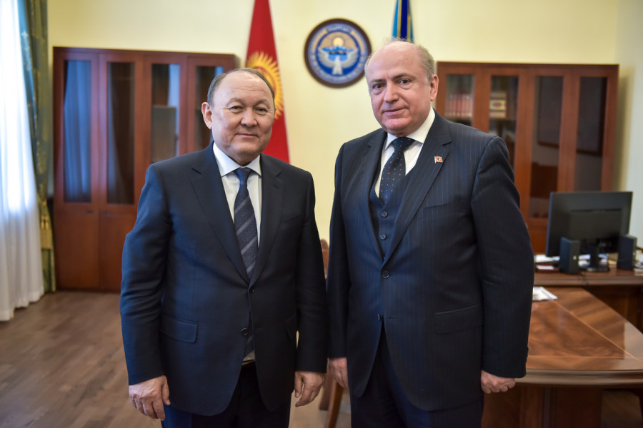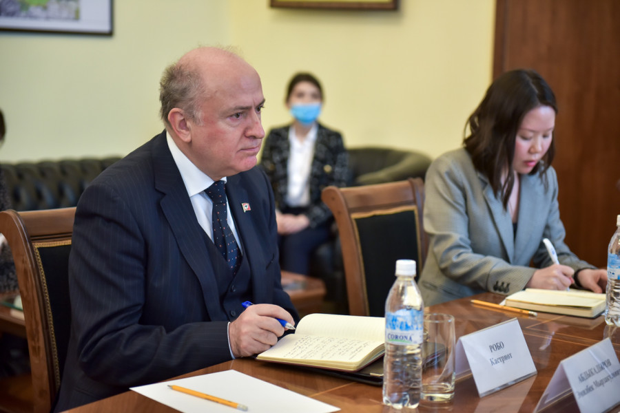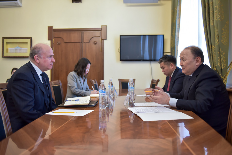 Мэр города Бишкек Эмилбек Абдыкадыров встретился с Чрезвычайным и Полномочным Послом Республики Албания в Кыргызской Республике Кастриотом Робо.
