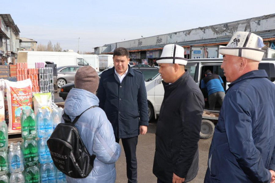 Глава Ленинского района Русланбек Тагаев посетил рынок «Дордой Моторс» и провел мониторинг цен на продукты первой необходимости.