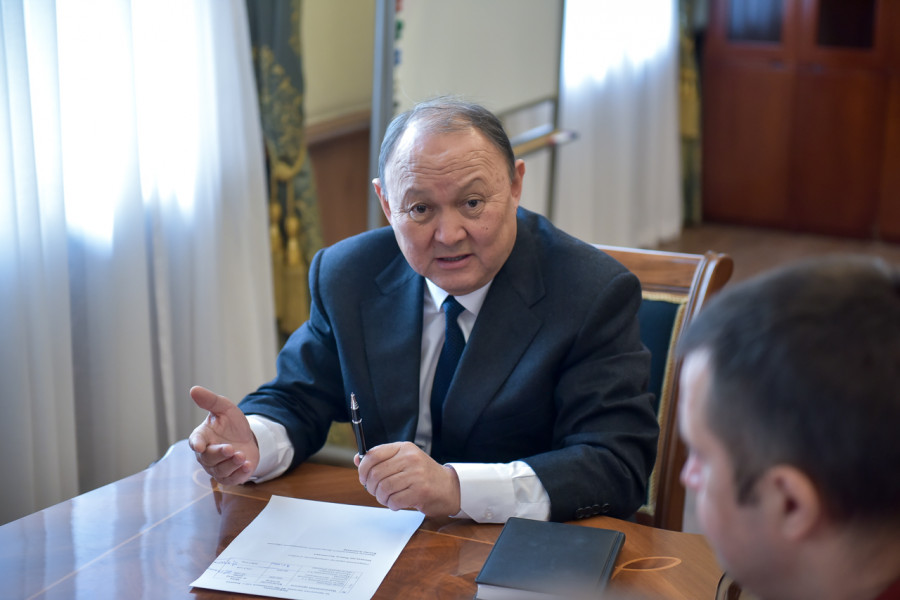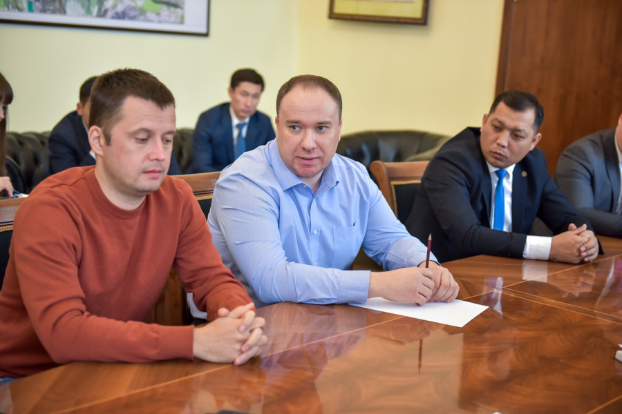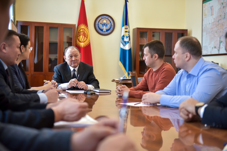 Мэр Бишкека Эмилбек Абдыкадыров встретился с генеральным директором сети гипермаркетов «Глобус» Равилем Рахматулиным и директором коммерческого департамента сети гипермаркетов «Фрунзе» Александром Костиным.