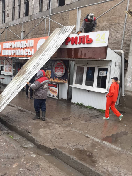 На основании письма департамента муниципального имущества мэрии города Бишкек о расторжении договоров аренды инспекцией совместно с спецбригадой МП "Тазалык" начаты работы по сносу точек быстрого питания по улице Суюмбаева (бывшая Карпинка). Некоторые владельцы демонтируют объекты в добровольном порядке.