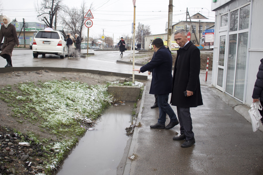 В ходе инспекции рассмотрены вопросы сноса объектов, препятствующих строительству. Отметим, что улица Гидростроительная граничит с Аламудунским районом Чуйской области, в связи с чем, проводится совместная работа по демонтажу.