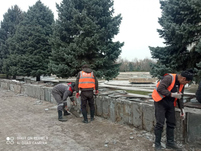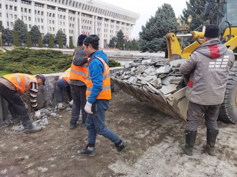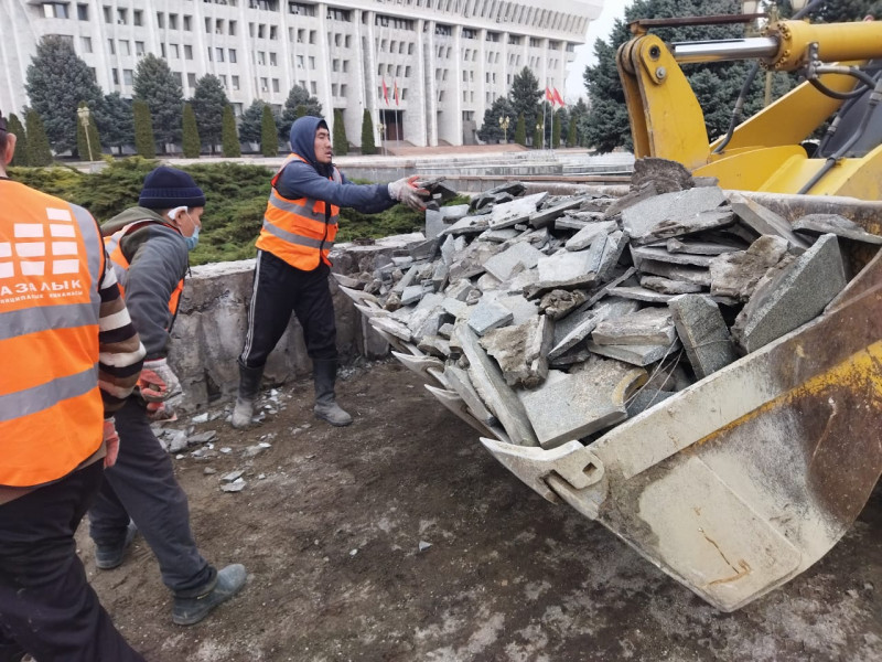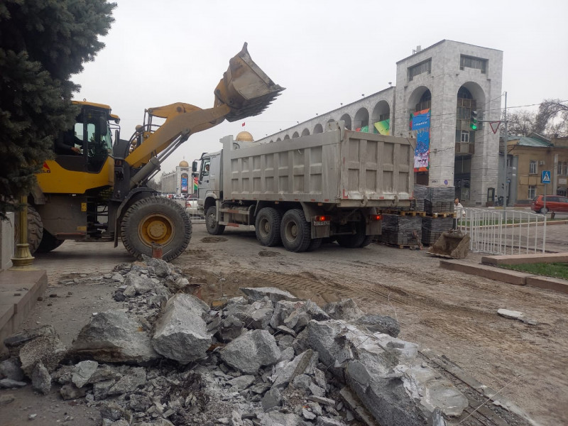 Прямо сейчас обновляется тротуарная плитка вокруг Белого, северная сторона по проспекту Чуй от улиц Логвиненко до Панфилова.Кроме того, в ближайшее время планируется замена брусчатки на территории скверов им. Т.Турсунбаевой, Дружбы, вокруг Дома Правительства, памятника Ленина, Правительственного сквера и площади «Ала-Тоо».