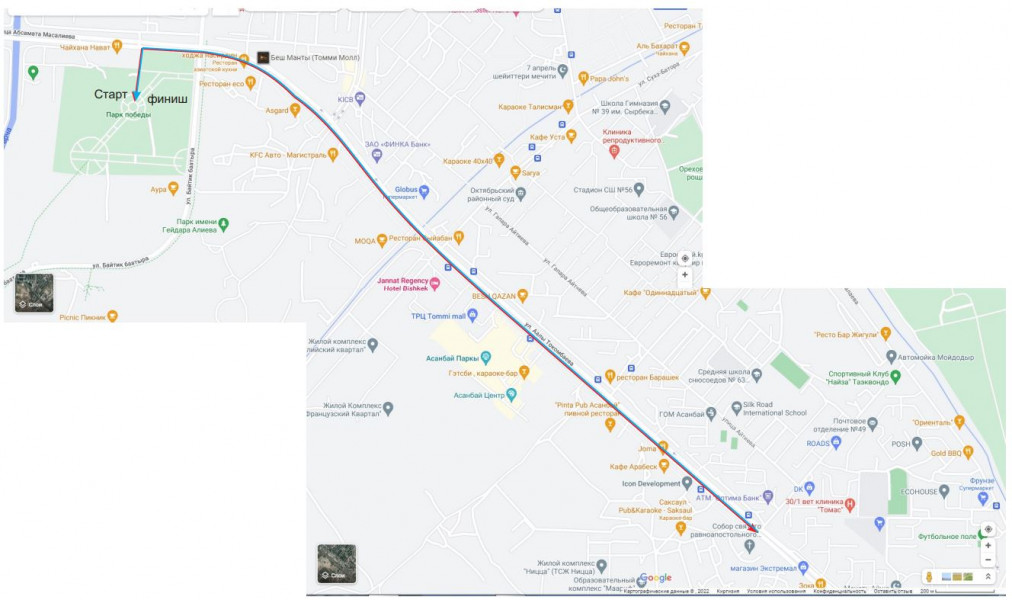 - 10:00 – Старт от парка имени Д. Асанова до микрорайона Асанбай и обратно.