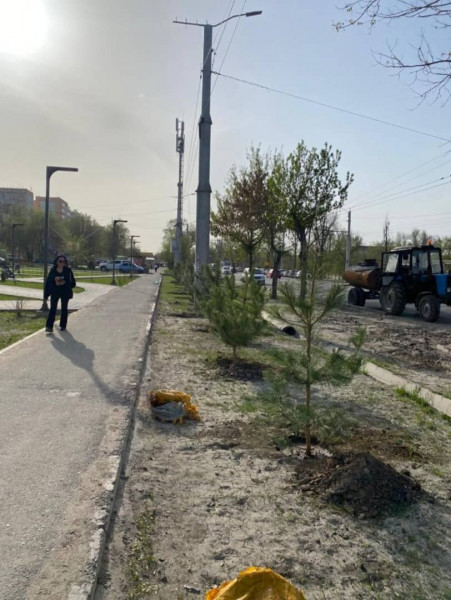 Кофейня «3 комнаты» закупили 600 саженцев живой изгороди и 7 кг семян газона, сделать посадку помогли аким Первомайского района Максатбек Сазыкулов и сотрудники акимиата.
