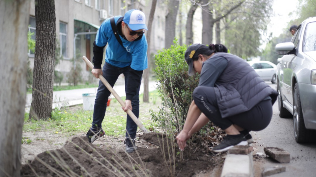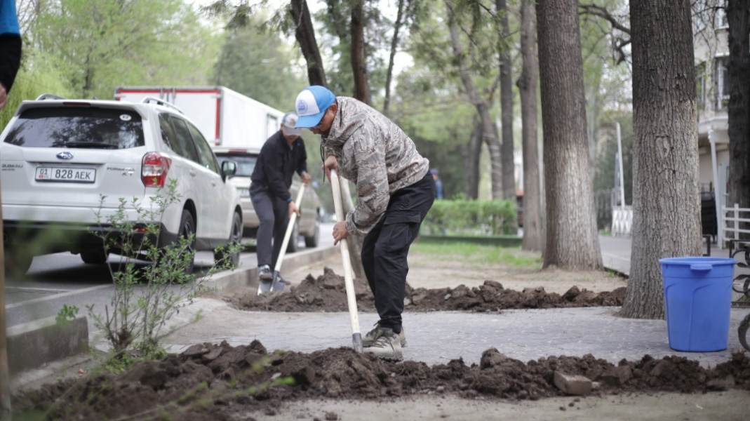 На территории Свердловского района ОФ «Бакдоолот» посадили 370 саженцев - 250 дубов и 120 туй по проспекту Шабдан Баатыра. Молодежное крыло микрорайонов Аламедин-1 и Учкун высадили 30 берёз возле СШ №38
