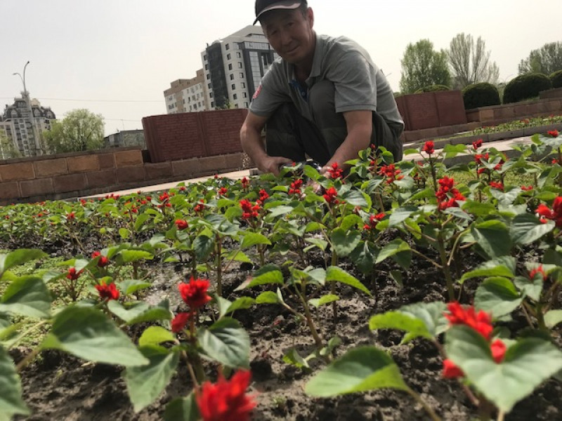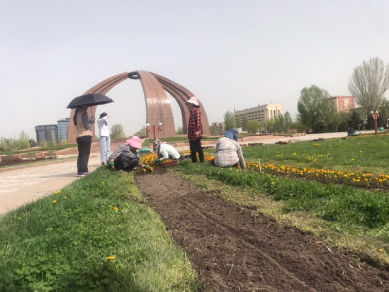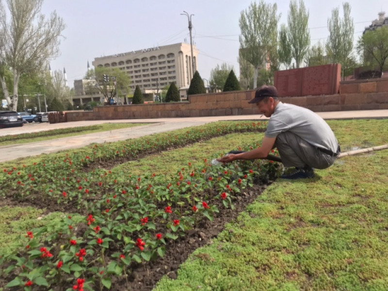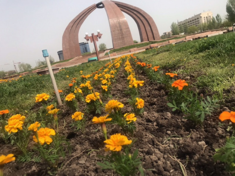 Муниципальное предприятие «Бишкекзеленхоз» начало посадку первых однолетних цветов на столичных клумбах.