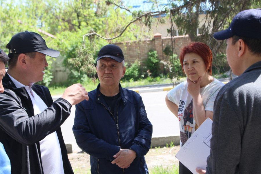 В ходе пешего обхода были обсуждены вопросы благоустройства, санитарной очистки, обустройства ирригации, установки шлюзов, установки светофора, сноса незаконных строений, ограждений и стихийной торговли.