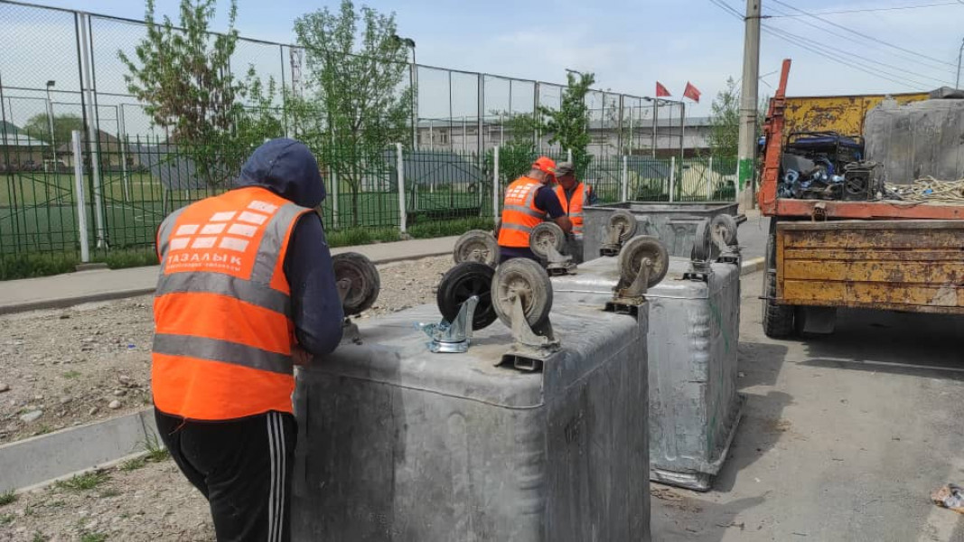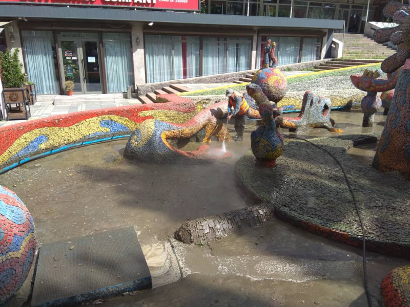 Муниципальное предприятие «Тазалык» начали сезонные работы по мойке столичных фонтанов, замене колёс на мусорных евроконтейнерах.