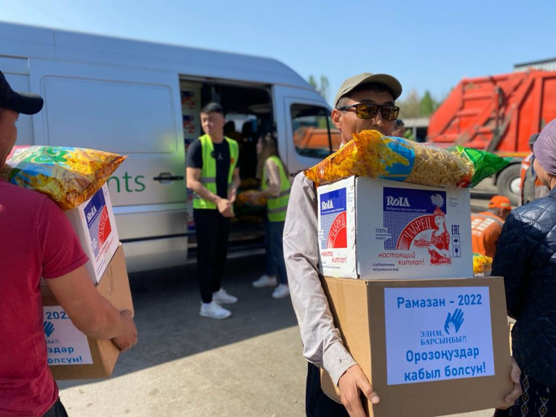 Благотворительный фонд «Элим барсынбы» совместно с выпускницами лицея «Сапат» раздали продуктовые наборы 100 сотрудникам муниципального предприятия «Тазалык».