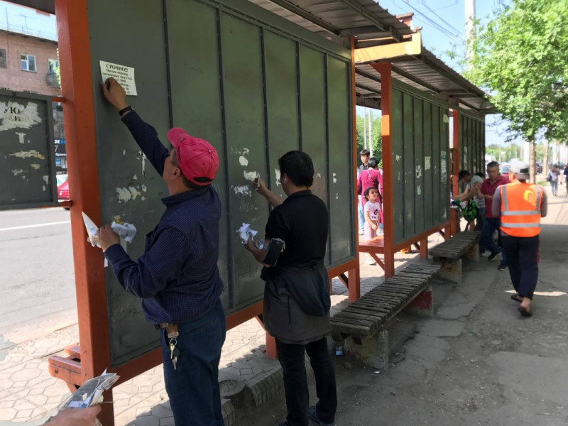 Накануне, коллектив акимиата и службы Первомайского района начали тотальную очистку от объявлений, было помыто порядка 23 остановок, работа будет продолжена.