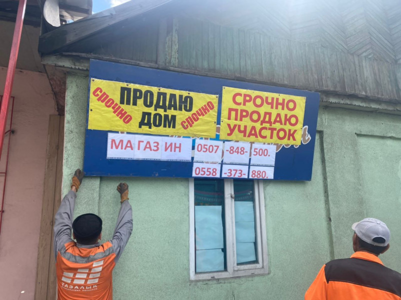 Сотрудники акимиата Первомайского района совместно с муниципальной инспекцией по контролю за благоустройством и землепользованием и предприятием «Тазалык» продолжают освобождать район от самовольно установленных рекламных конструкций.