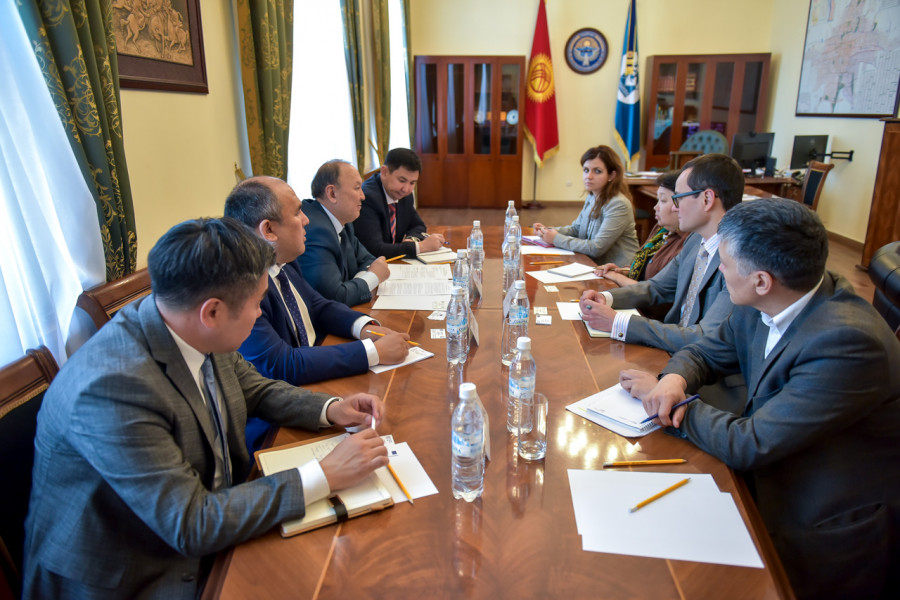 Мэр Бишкека Эмилбек Абдыкадыров встретился с делегацией Европейского инвестиционного банка во главе с главным советником операций по кредитованию Центральной Азии господином Адамом Брун.