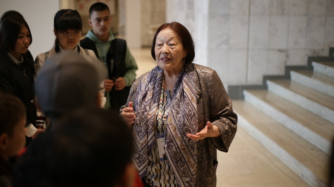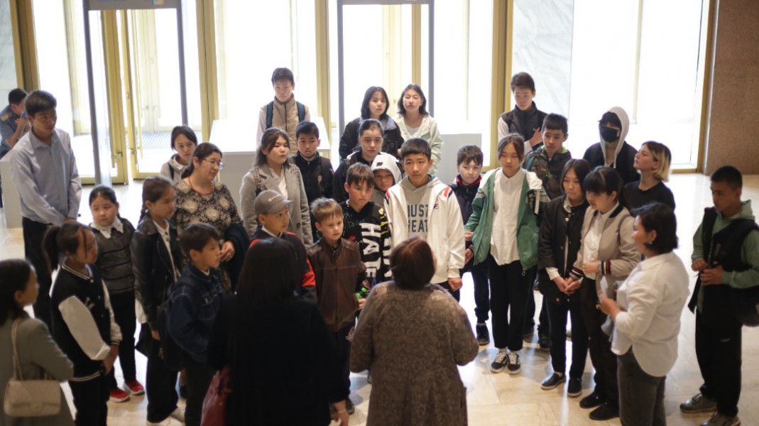Заместитель акима Первомайского района Аида Рысбаева вместе с учениками школы №54 посетили Национальный исторический музей КР.