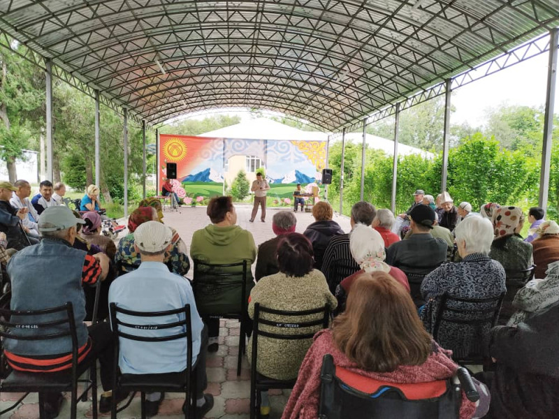 Для постояльцев учреждения организовали концерт, который музыкальными сопровождениями и песнями посвящённые матерям поддержал ансамбль пограничных войск КР. После концерта была организовано праздничный обед.