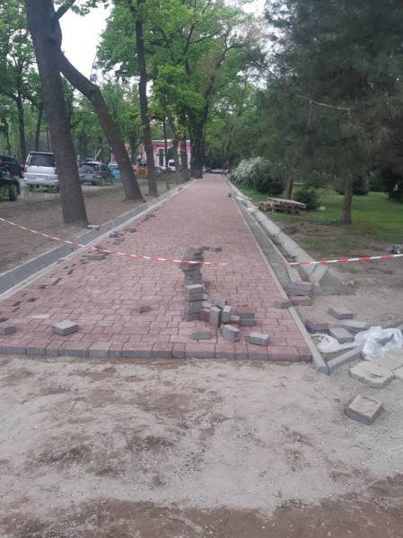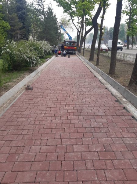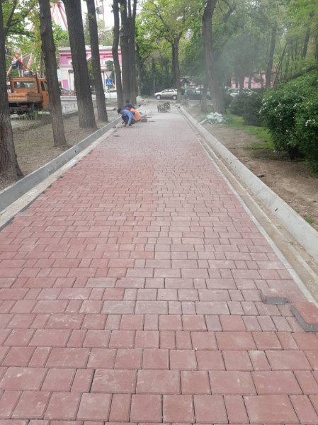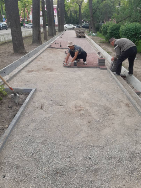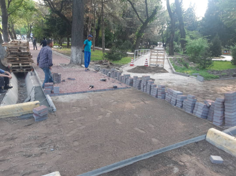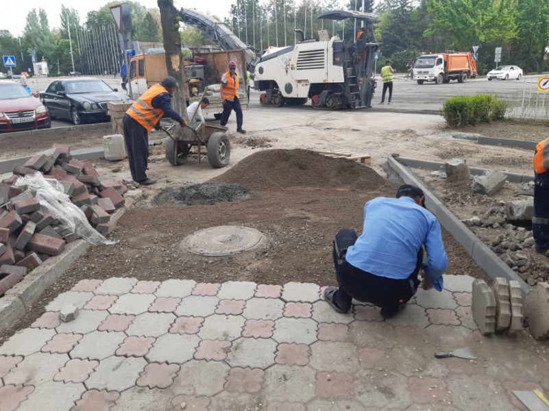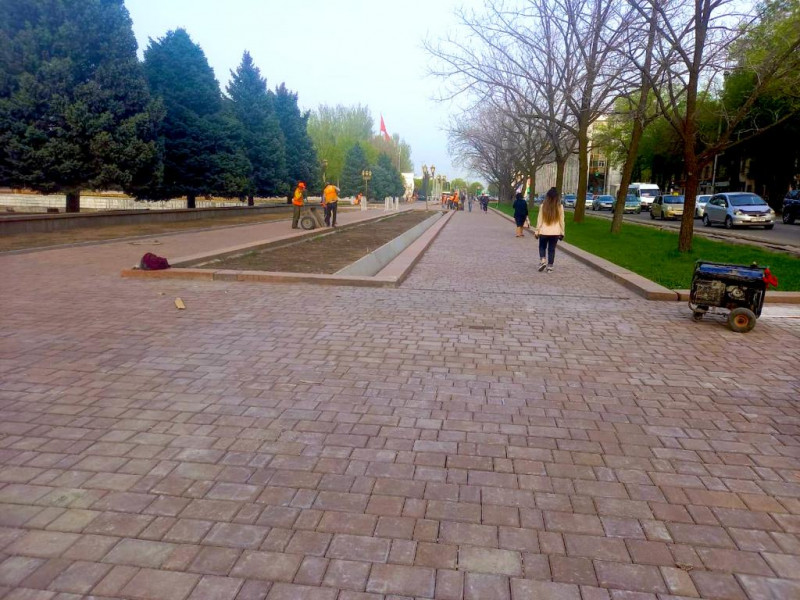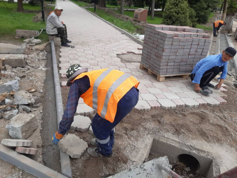 По линии МП «Бишкекасфальтсервис» начаты работы по укладке брусчатки на пешеходных дорожках в сквере Т. Турсунбаевой. Уложена брусчатка площадью 1200 м2, произведен демонтаж и установка 60 дорожных бордюров перед Кыргызским национальным драматическим театром в количестве. Завершены работы по устройству ирригации в сквере Трудовой Славы.