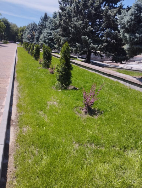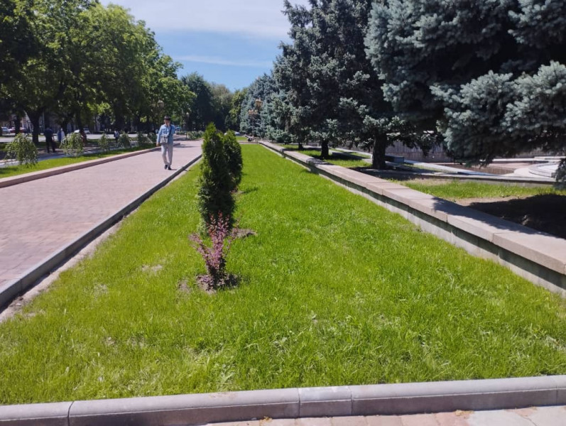 По линии МП «Бишкекзеленхоз» проведены работы по устройству поливочного водопровода вокруг Монумента Дружбы народов, вокруг Дом Правительства, вокруг Жогорку Кенеша.