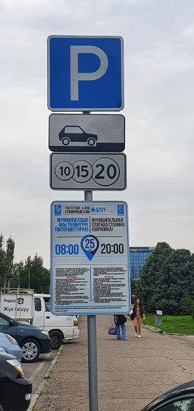 Муниципальные парковки обознаются дорожными знаками, а операторы одеты в специальный жилет красного цвета и имеют при себе специальные бейджики, обязательно выдают чеки об оплате. Официальный и единый тариф – 25 сомов, вне зависимости на какое время вы оставили свой автомобиль.
