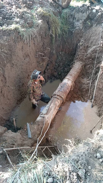 Ленинском районе столицы на пересечении улиц Садыгалиева-Толстого бригада Службы водоснабжения управления «Бишкекводоканал» ликвидировала аварийное повреждение трубопровода диаметром 300 мм.