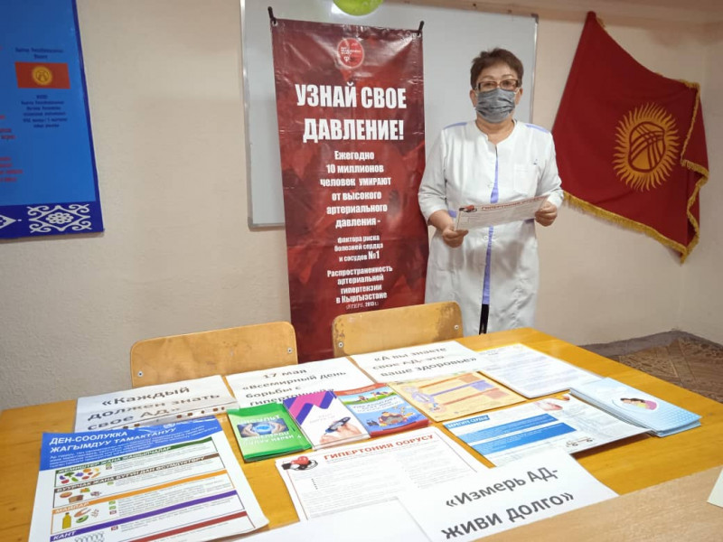 2022 год тоже не стал исключением и в этом году по приказу МЗ КР №574 от 14 мая 2022 года «О проведении мероприятий в рамках Всемирного Дня борьбы с артериальной гипертензией», а также на основании одноименного приказа ГУЗ мэрии города Бишкек № 05-11/57 от 16.05.2022 г. в центрах семейной медицины были организованы мероприятия, посвященные этому дню.