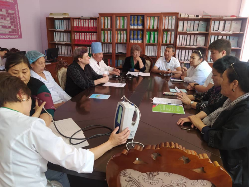 Были развернуты пункты по измерению АД на мини-рынке «Чинар» в микрорайоне «Аламедин – 1», в школе-гимназии № 38.