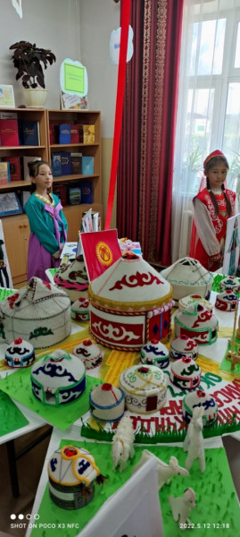 В первом туре конкурсанты оформили книжную выставку «Творчество народов Кыргызстана» и защитили её.