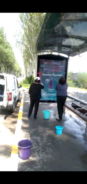 Департаментом по управлению муниципальным имуществом мэрии города Бишкек проведены очистительные работы остановочных комплексов.