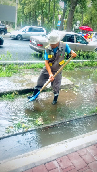 Вручную очищается канал «Кызыл-Аскер» и продуваются ЗКДС по улице Льва Толстого.