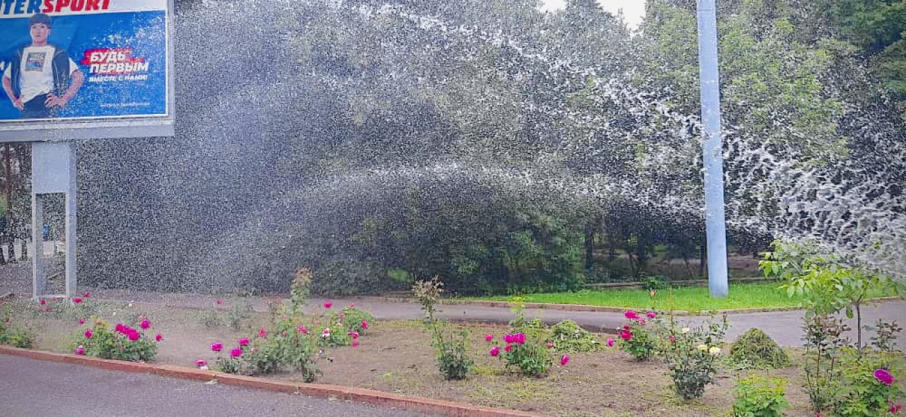 Доброе утро Зеленхоза началось с полива зеленых насаждений.