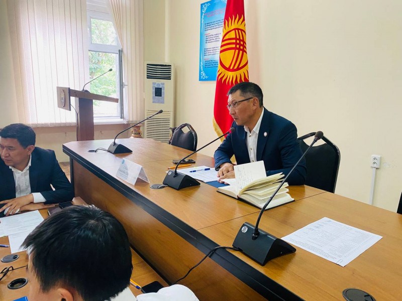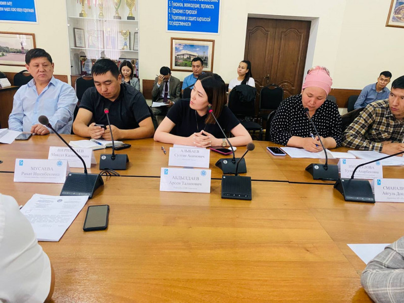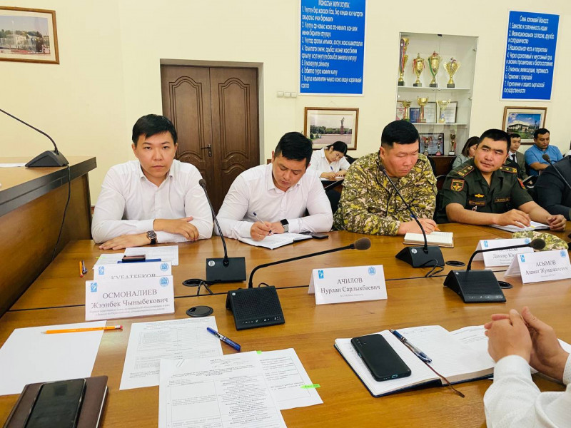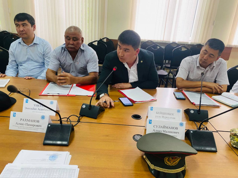 Глава района Максатбек Сазыкулов с руководителями районных служб, подразделений и МТУ обсудили три вопроса: о подготовке к визиту делегации на Евразийский экономический форум, об поливных работах, о рейдах по предотвращению незаконной торговли на территории района.