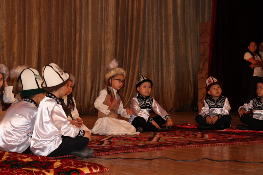 Дети исполняли отрывки из сказки: "Акылдуу дыйкан", "Бугу эне","Чоң казат" той "Манастын түшү"