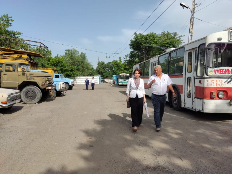 Заместитель председателя Международного объединения профсоюза работников по транспорту и дорожному хозяйству Татьяна Берденева посетила Бишкекское троллейбусное управление.