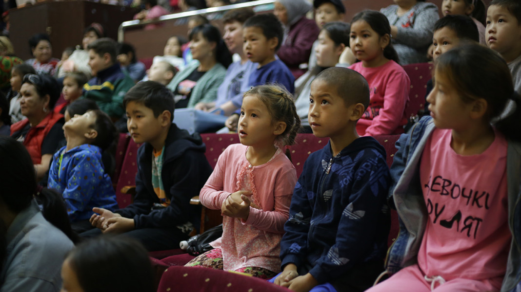 В государственном национальном русском театре драмы имени Чингиза Айтматова ребят поздравили с наступающим Международным днем защиты детей.