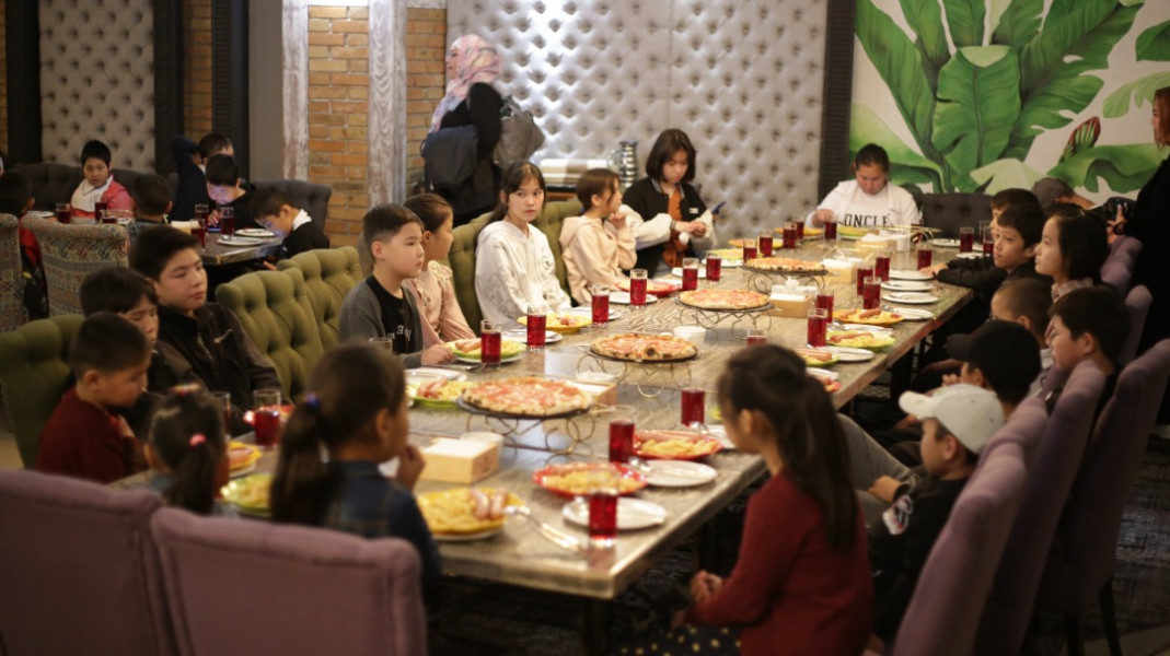 В чайхане «Тюбетейка» праздничным обедом накормили 50 детей из малообеспеченных семей и социально-уязвимых слоев населения, которые состоят на учете в районном управлении соцразвития.
