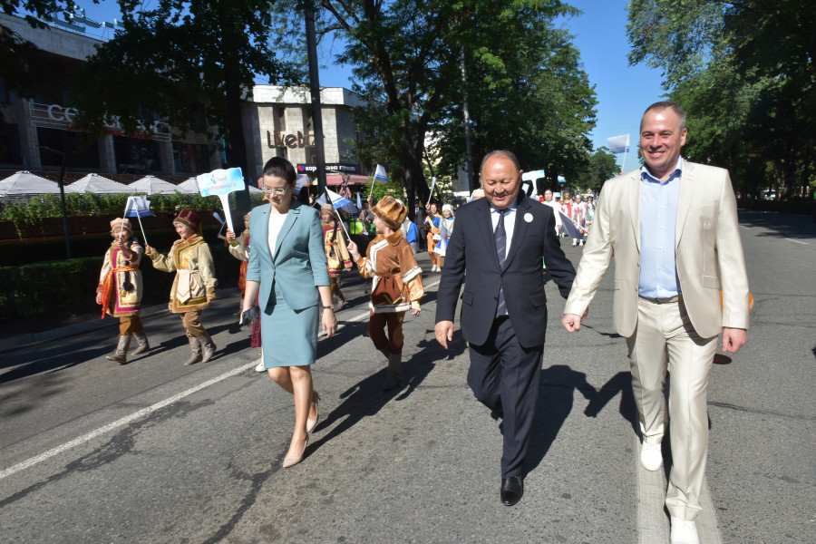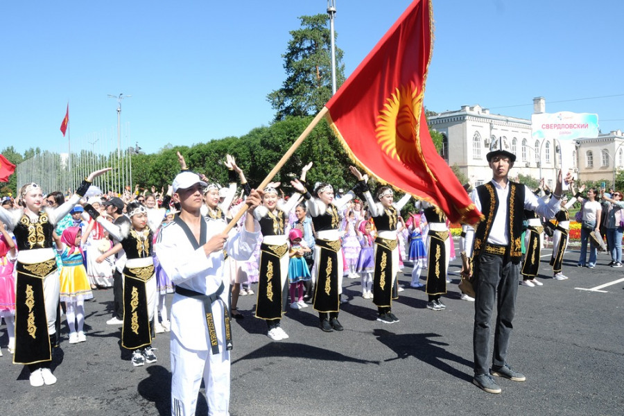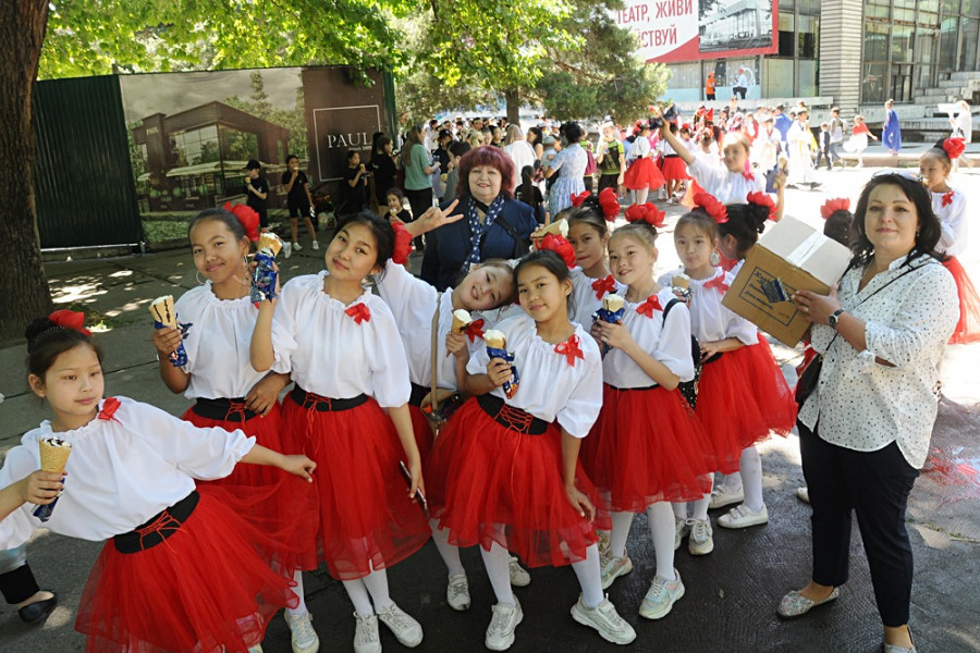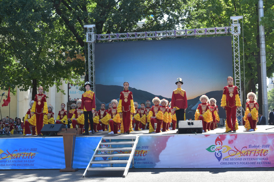 На площадке перед кинотеатром «Ала-Тоо» состоялось торжественное открытие мероприятия с участием Президента Кыргызской Республики Садыра Жапарова.