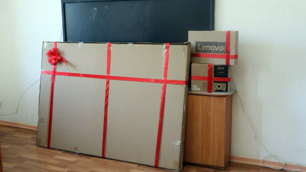 Учащиеся специальной вспомогательной школы для детей с ограниченными возможностями здоровья №22 от главы Ленинского района Русланбека Тагаева получили интерактивную доску.