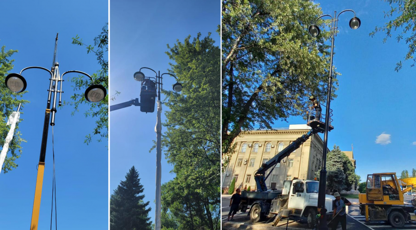 По улице Орозбекова между улицами Абдумомунова и Фрунзе заменили 6 старых опоры наружного освещения на новые 12 метровые, двухрожковые со светодиодными светильниками, их мощность 150 Вт.