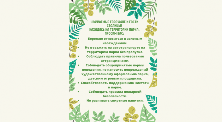 Дорогие горожане! Убедительно просим соблюдать правила посещения парков и бережно относиться к имуществу парков!