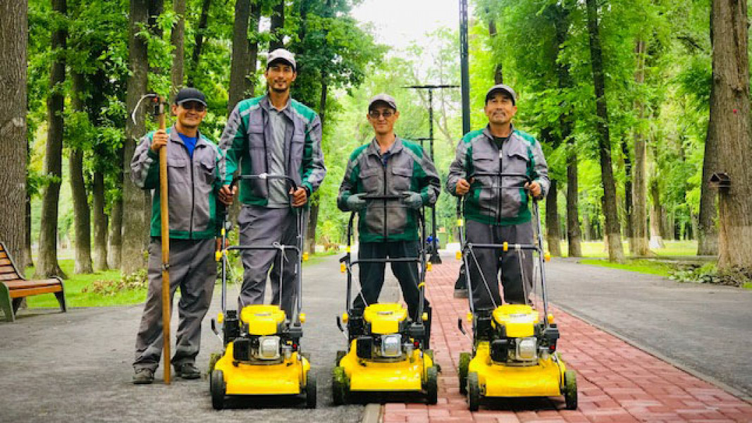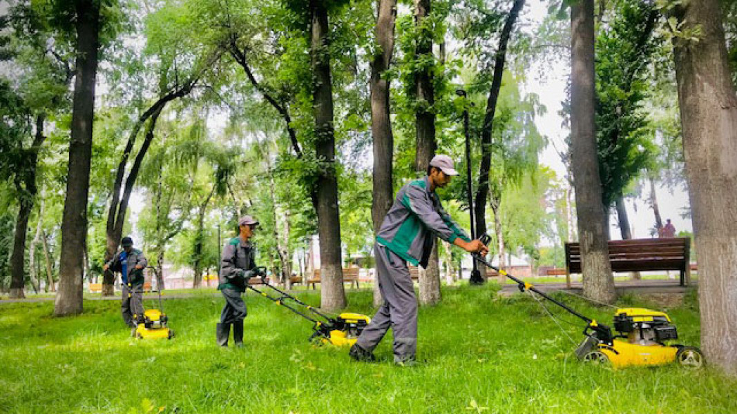 Ежедневно с раннего утра трудолюбивые сотрудники парков проводят полив, покос газонной травы, прополку клумб, вывоз мусора и другие разновидности работ по уходу за внешним видом парков.