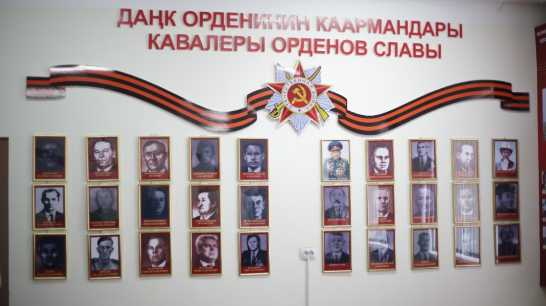Во втором зале представлены фотографии и автобиографические данные 76 Героев Советского Союза из Кыргызстана, 30 кавалеров орденов Боевой Славы, 12 блокадников Ленинграда, 5 узников концлагерей, участников Великой Отечественной войны и тружеников тыла.