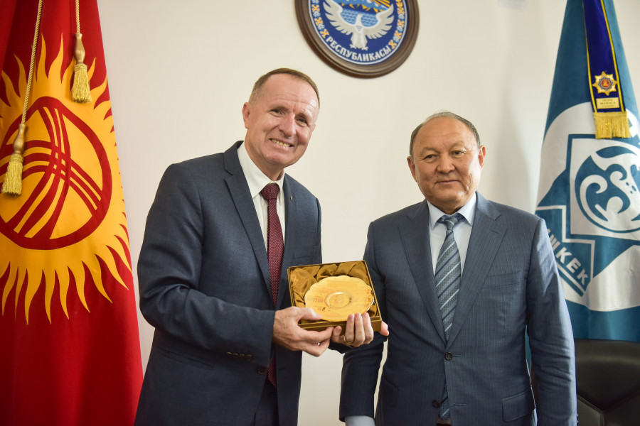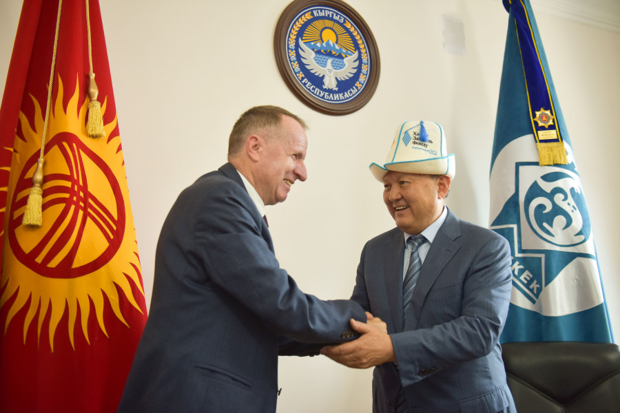 Мэр столицы Эмилбек Абдыкадыров встретился с руководителем представительства Фонда Ханнса Зайделя в Центральной Азии Доктором Макс Георг Майером и выпускниками совместных программ Академии госуправления при Президенте КР имени Ж. Абдрахманова и Фонда Ханнса Зайделя.
