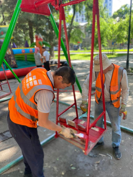 На бульваре Молодой Гвардии от улицы Боконбаева до проспекта Жибек Жолу мы покрасили скамейки и детские площадки.