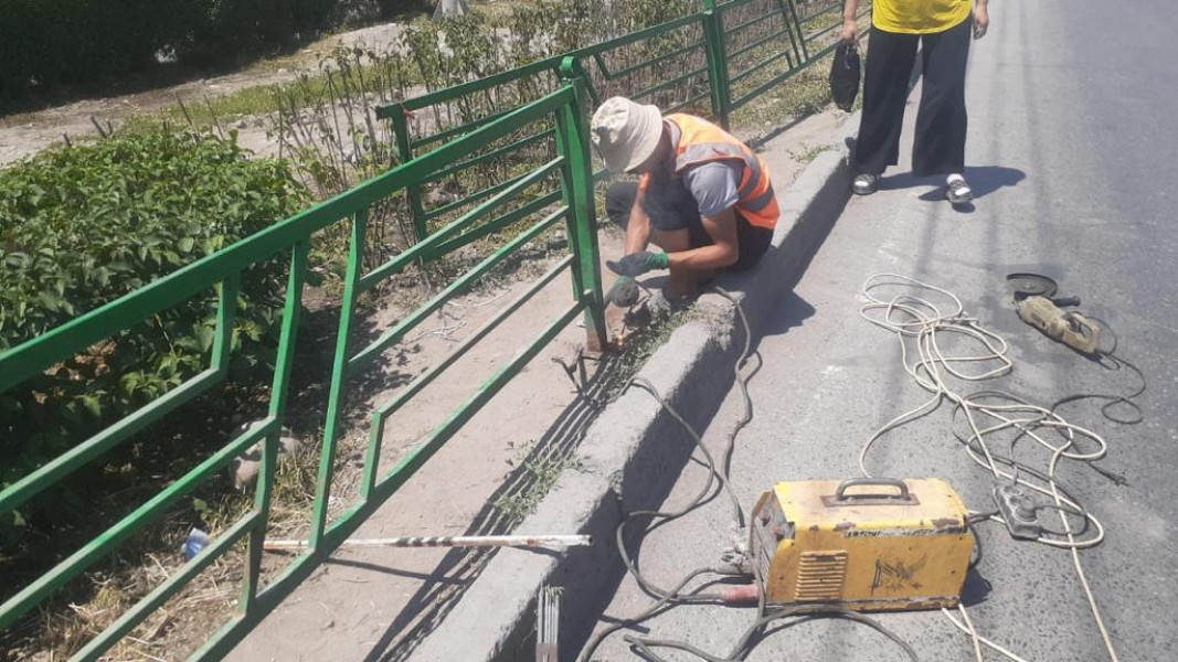 Отремонтированы металлические ограждения на пересечении проспекта Чуй и улицы Павлова.