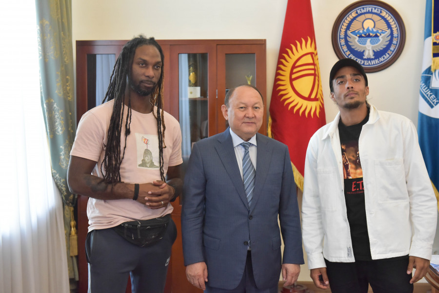 Мэр столицы Эмилбек Абдыкадыров встретился с одним из организаторов отборочного тура Чемпионата мира по современным танцам – Fasion Concept Festival Жаном Воиновым и почетными зарубежными гостями мероприятия – организатором чемпионата Канон Зузоа и хореографом Мадонны Марвином Гофин.