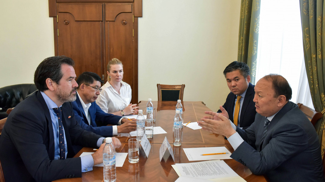 Мэр столицы Эмилбек Абдыкадыров встретился с Чрезвычайным и Полномочным Послом Королевства Испания в КР господином Хорхе Урбиола Лопес де Монтенегро.